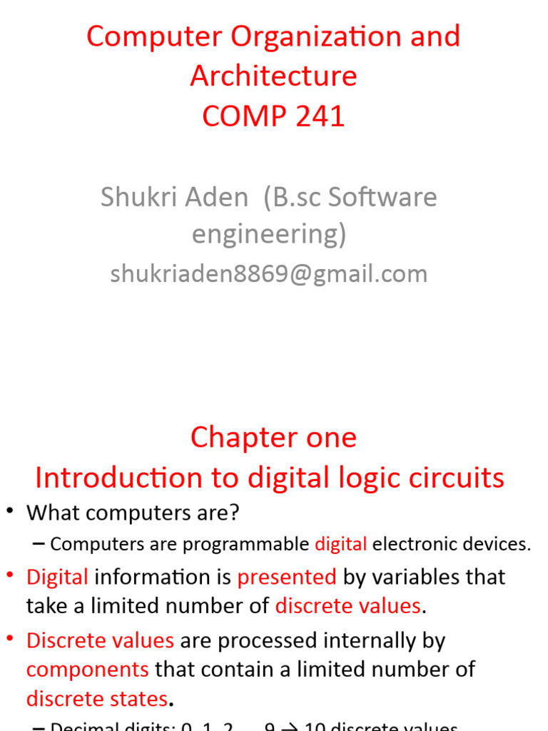 – Decimal digits: 0, 1, 2,…..9 → 10 discrete values.