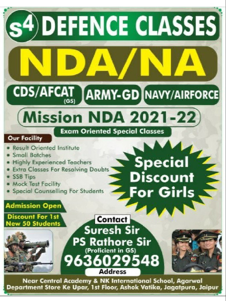 Indian Navy, and Indian Air Force and for Indian Naval Academy Course. NDA