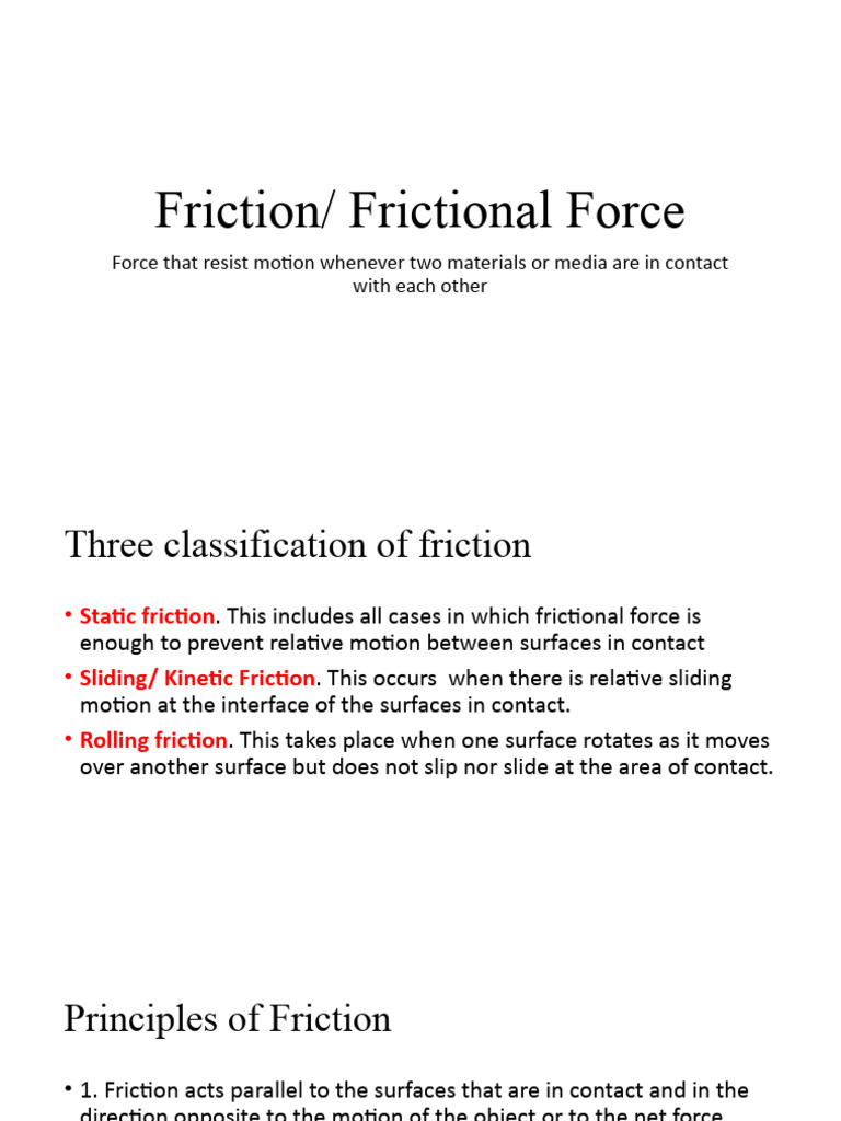 • Sliding/ Kinetic Friction. This occurs when there is relative sliding