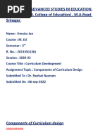 experience. It is important to note that curriculum implementation cannot