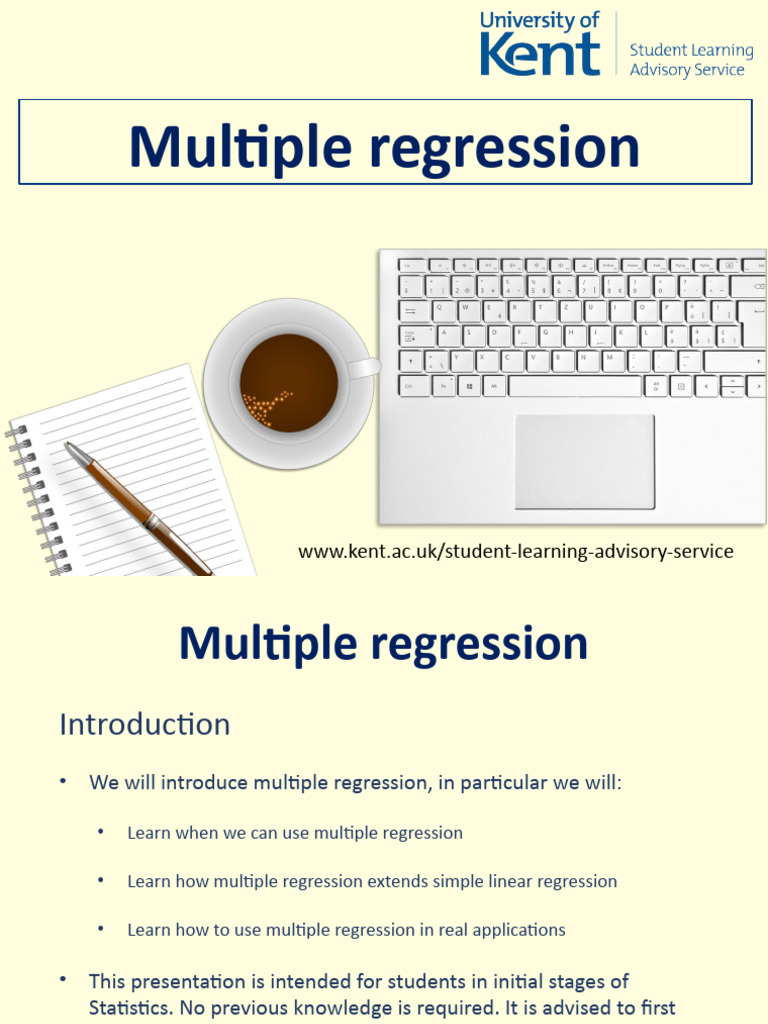 • We will introduce multiple regression, in particular we will:
