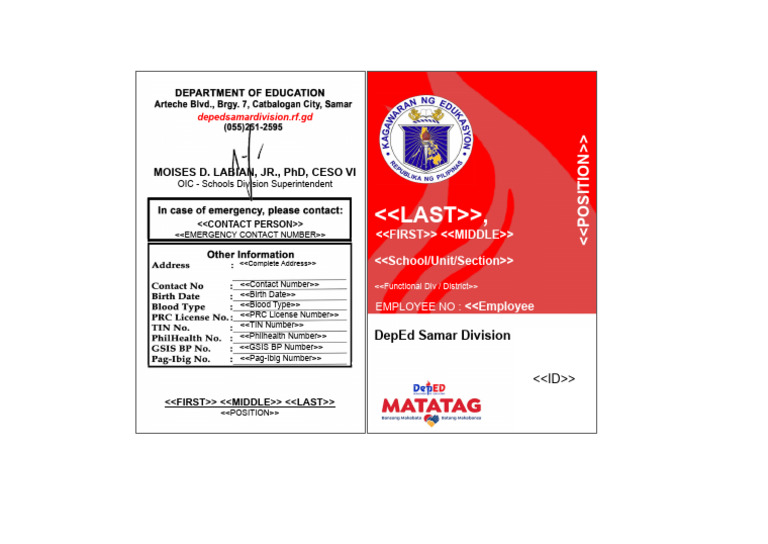 <<Philhealth Number>> DepEd Samar Division