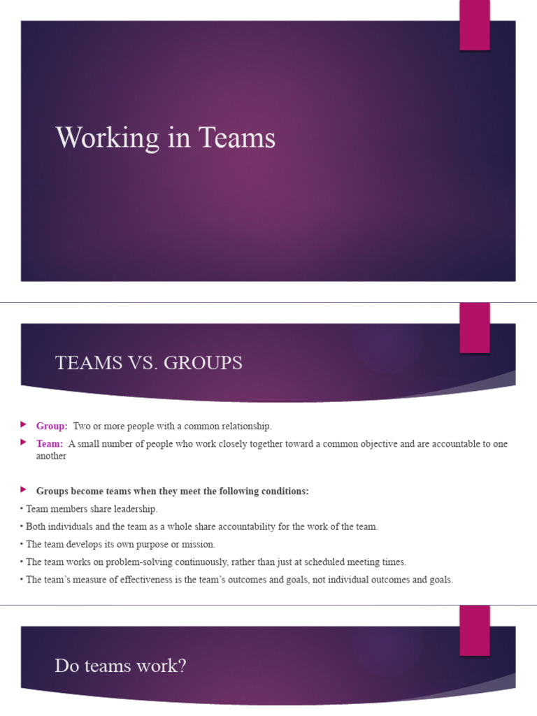 Teams also can be more motivational. Teams allow for greater task identity, with team members working on tasks
