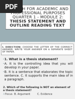 Direction: Create a thesis statement based on the
