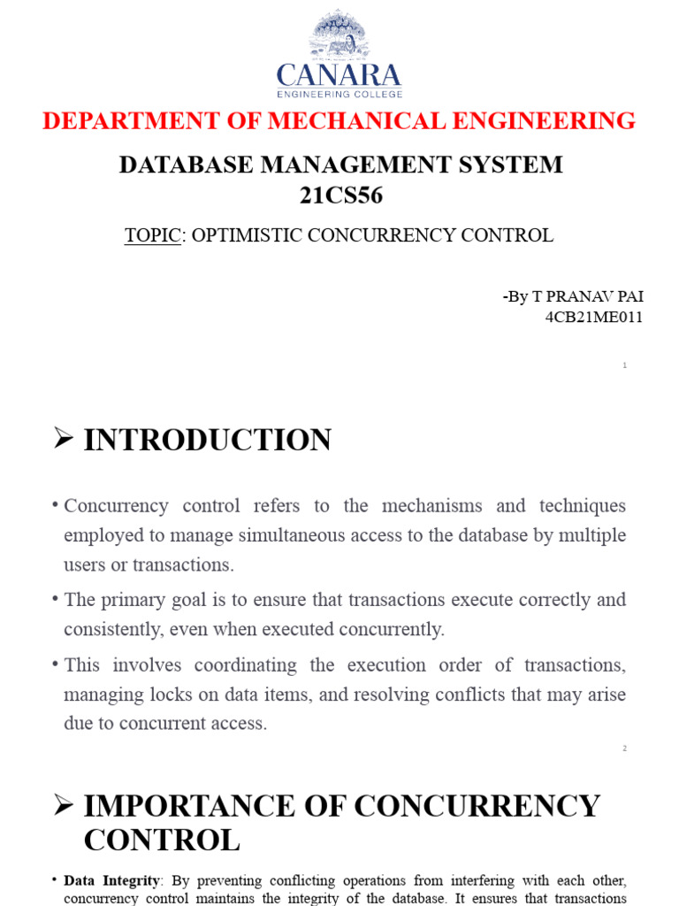 TOPIC: OPTIMISTIC CONCURRENCY CONTROL