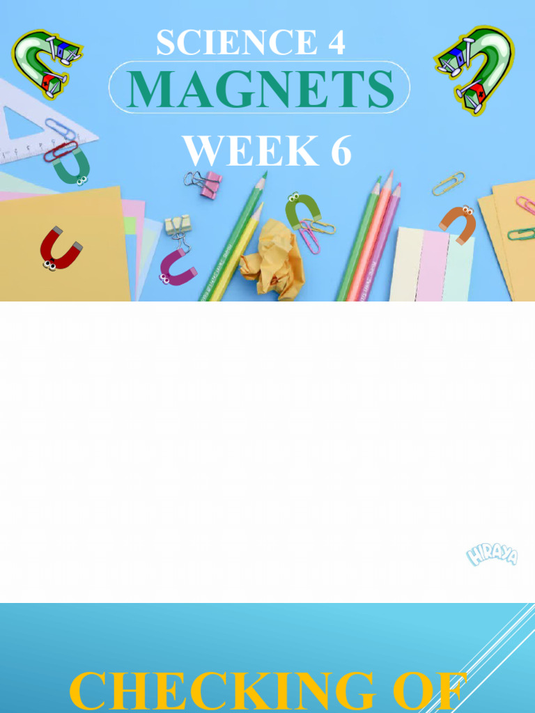Direction: Use thumbs up if the objects attracted by magnets and thumbs down if the