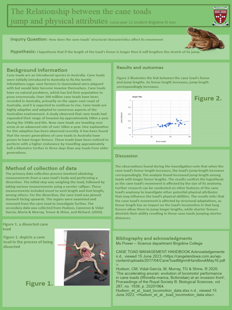 measurements from a cane toad's body and performing a toads with longer femur lengths. The results confirm the hypothesis