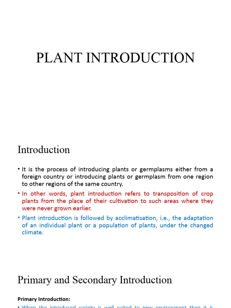 • In other words, plant introduction refers to transposition of crop