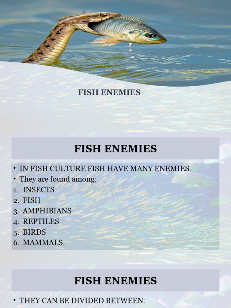 • IN FISH CULTURE FISH HAVE MANY ENEMIES.