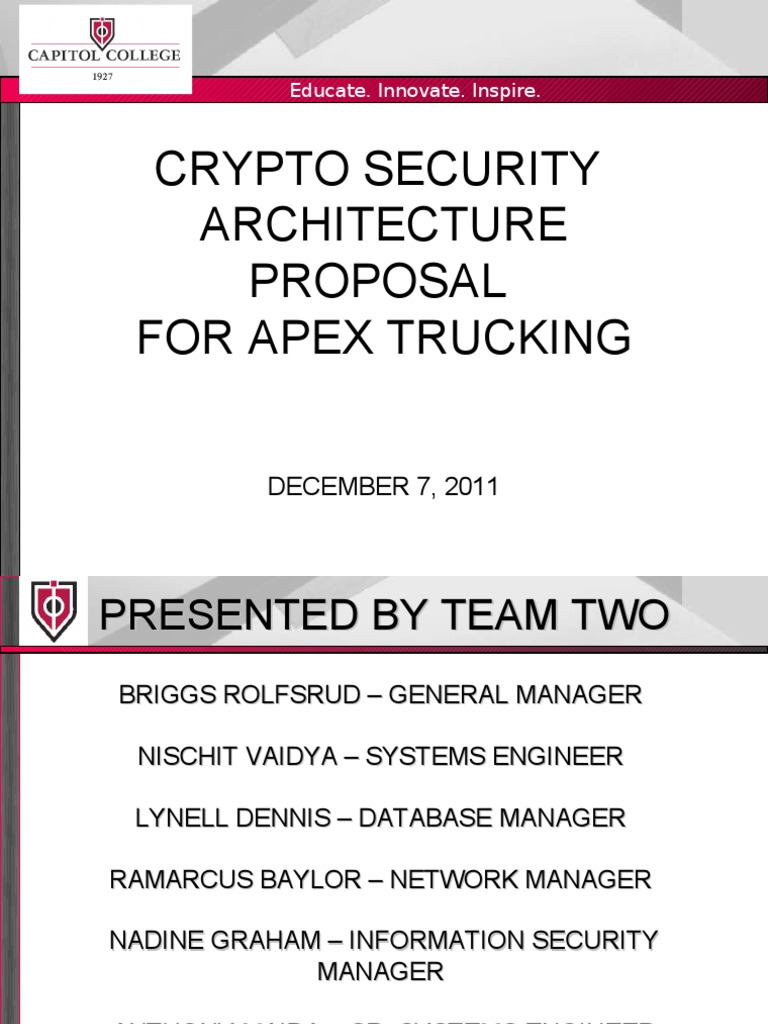 CRYPTO SECURITY ARCHITECTURE PROPOSAL FOR APEX TRUCKING
