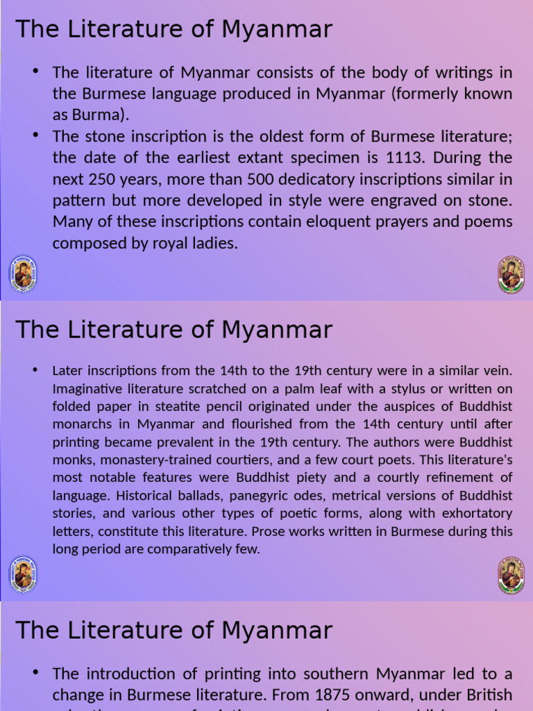 language. Historical ballads, panegyric odes, metrical versions of Buddhist