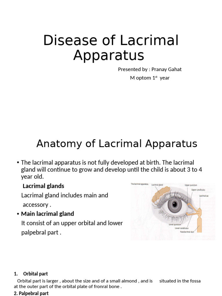 • The lacrimal apparatus is not fully developed at birth. The lacrimal