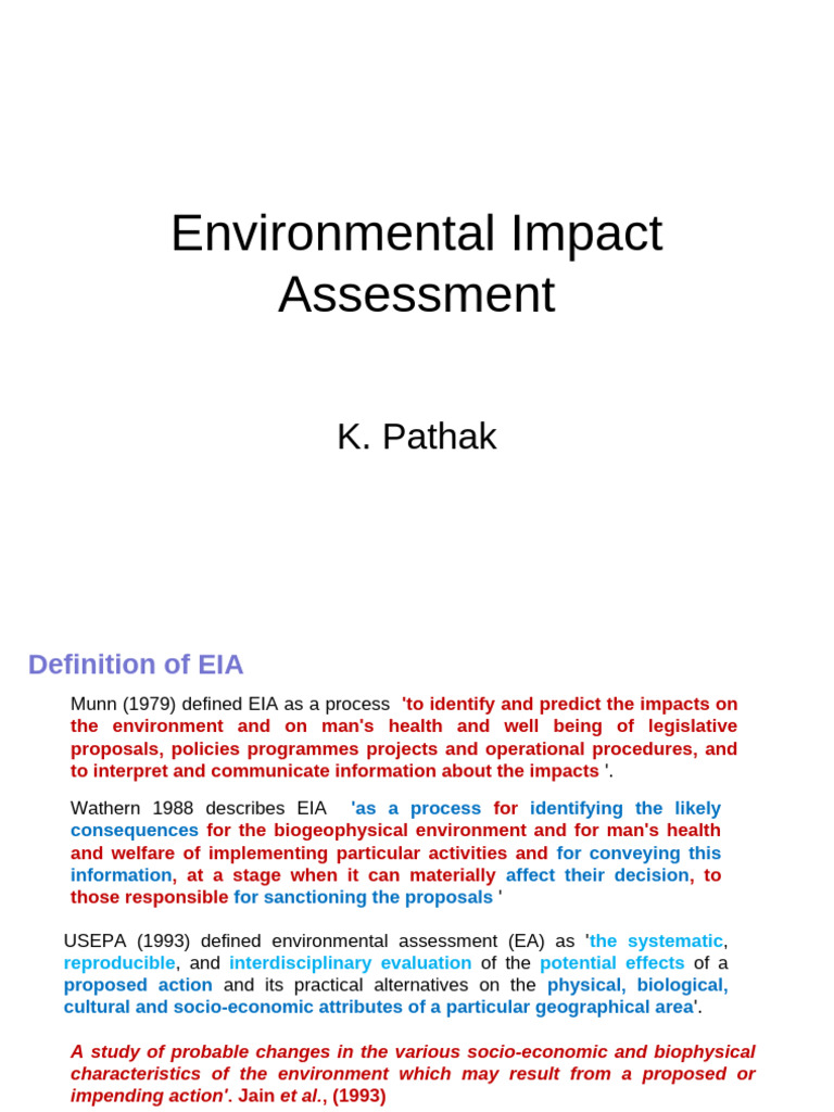 Munn (1979) defined EIA as a process 'to identify and predict the impacts on