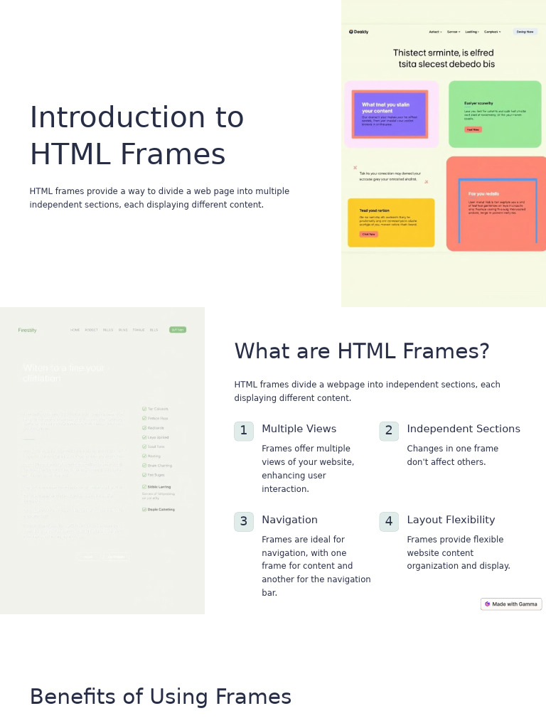 Frames allow for easy navigation Frames can be used to display Frames are ideal for displaying