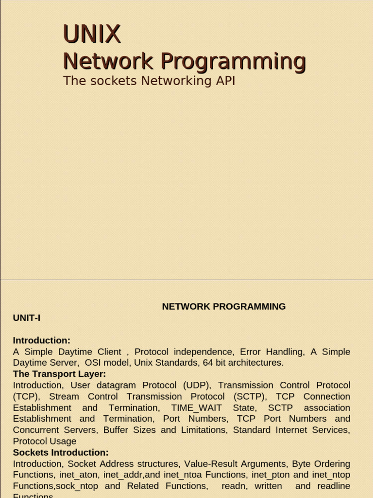 Daytime Server, OSI model, Unix Standards, 64 bit architectures.
