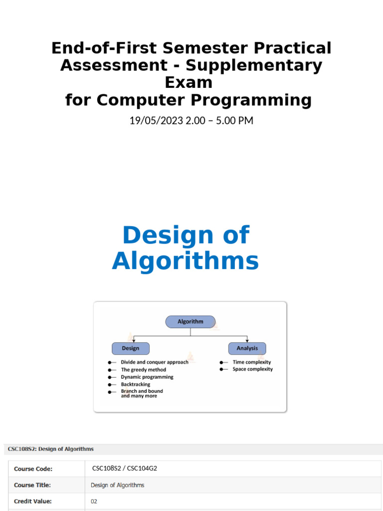 problem. Hence the analysis of algorithms is needed to