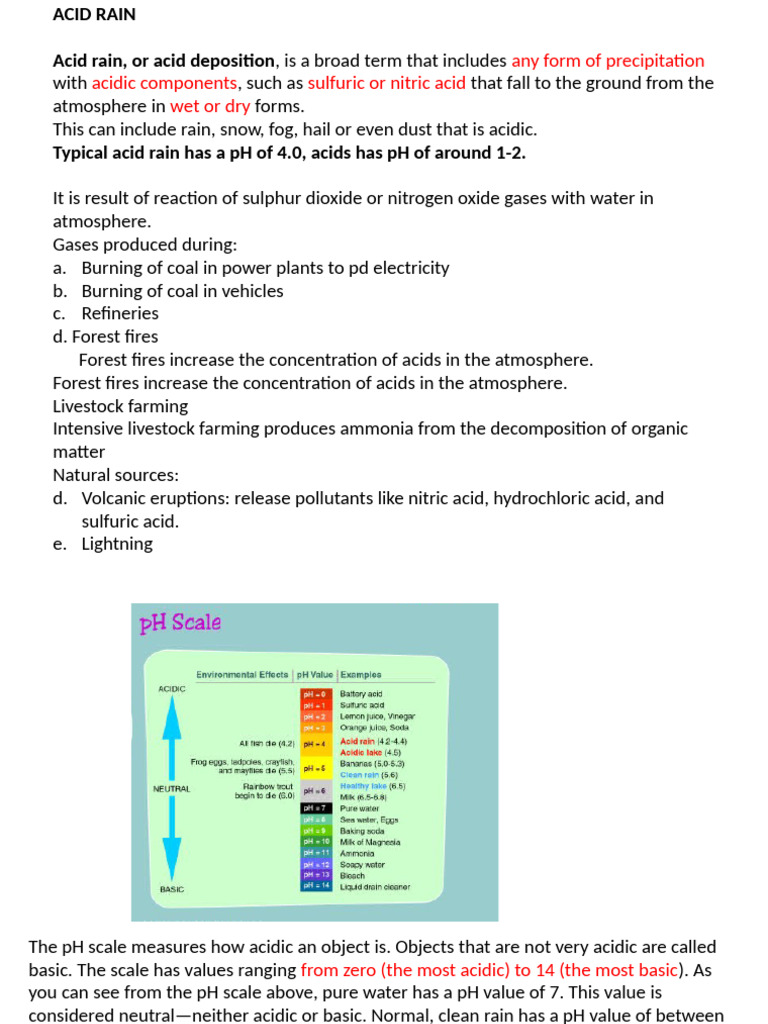 with acidic components, such as sulfuric or nitric acid that fall to the ground from the
