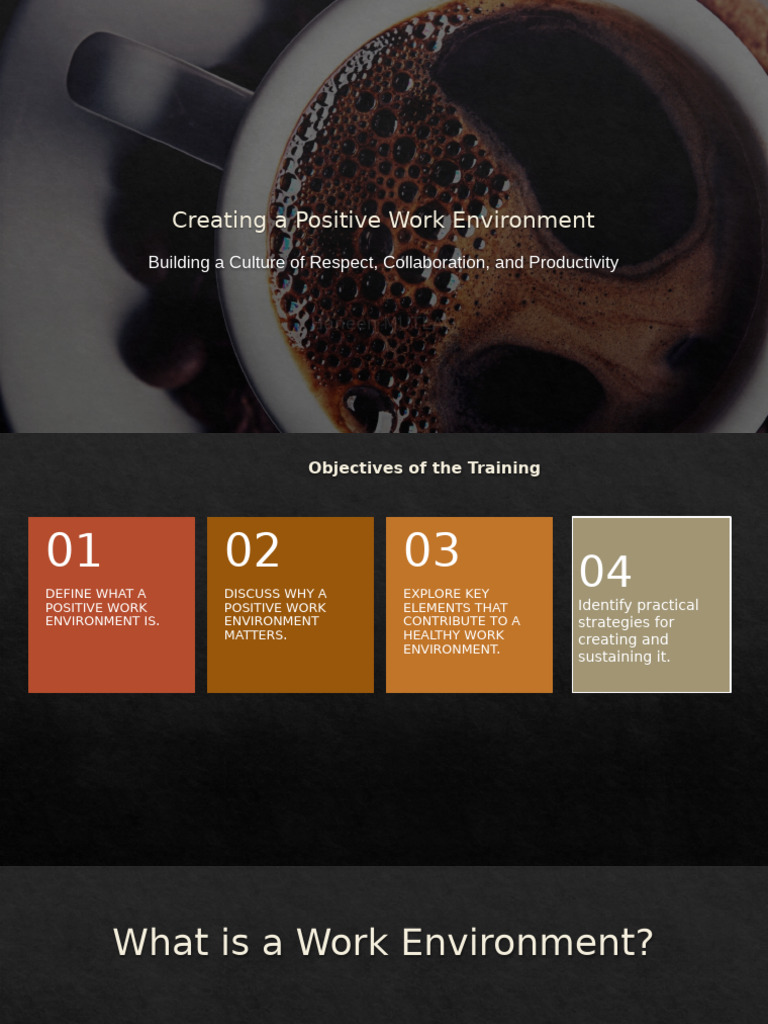 •A work environment includes the physical setting, company culture, and interpersonal relationships