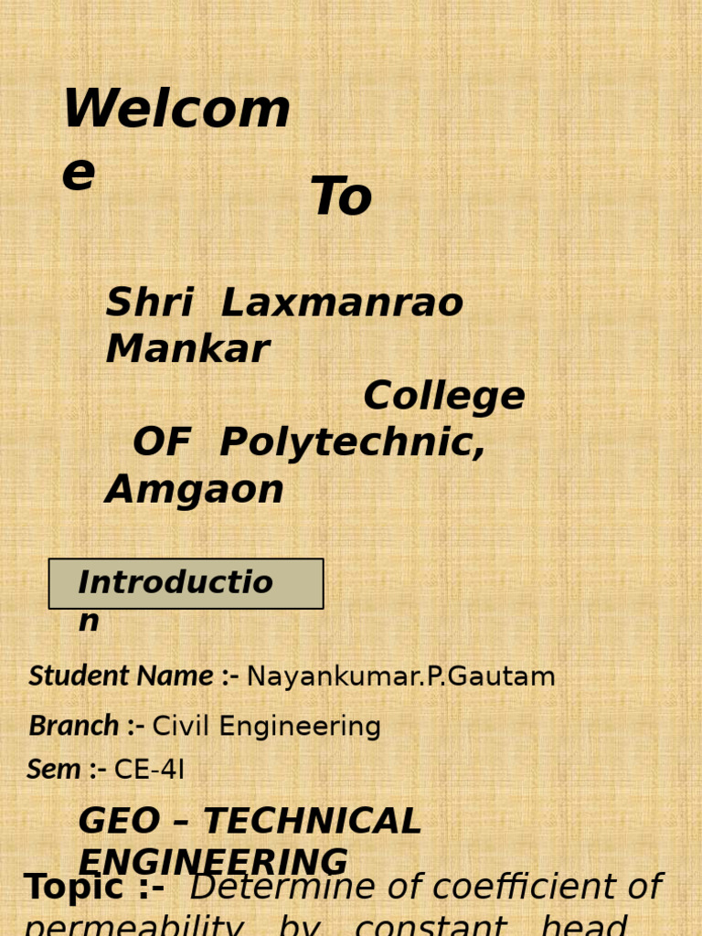 DETERMINATION OF COEIFFICIENT OF PERMEABILITY