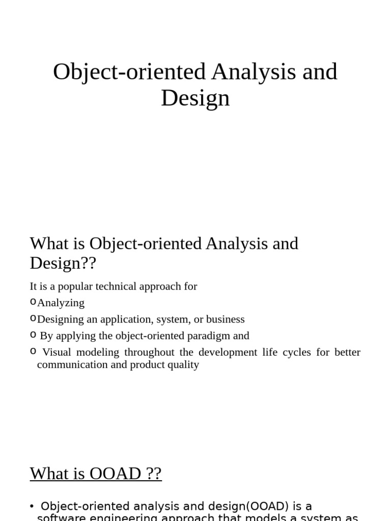 • Improved modularity: OOAD encourages the creation of small, reusable