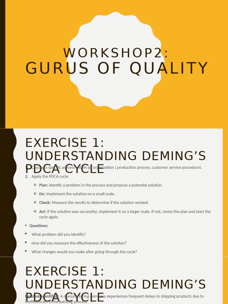 o Deming’s Approach: Focuses on continuous improvement (PDCA) and management's role in fostering quality.
