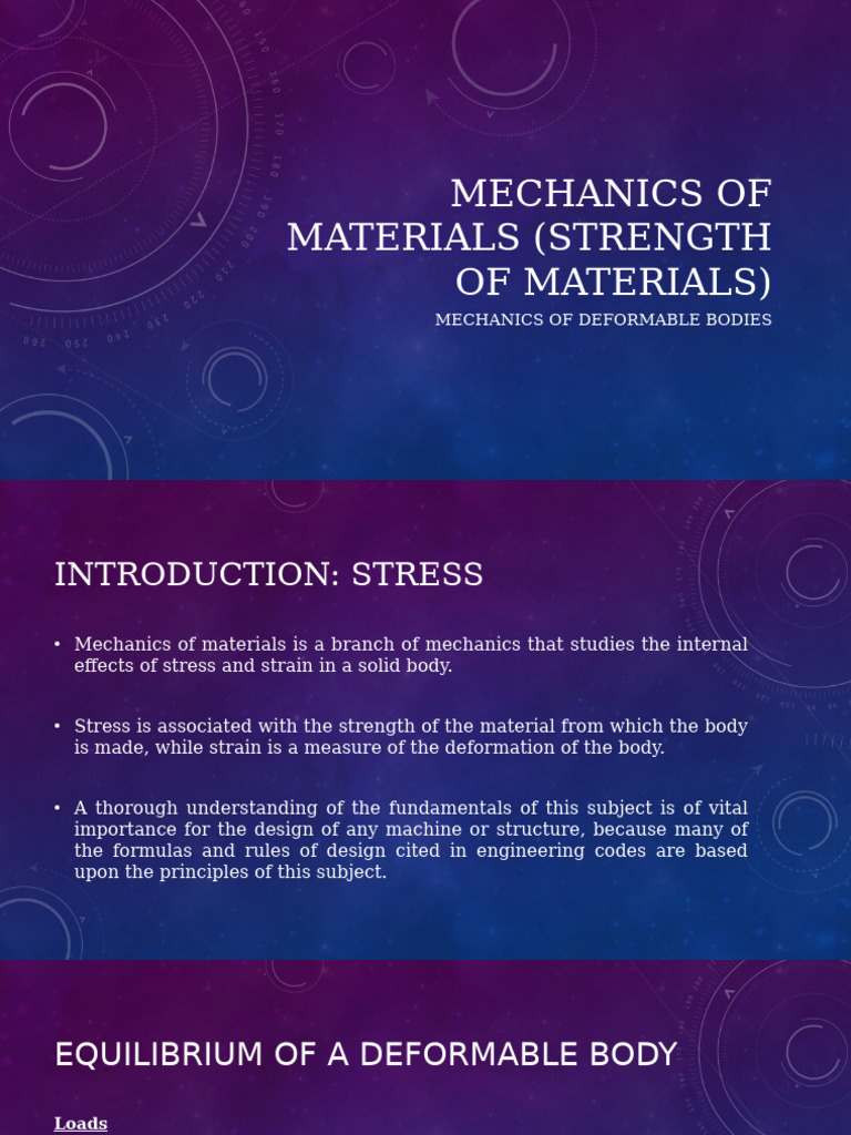 • Mechanics of materials is a branch of mechanics that studies the internal