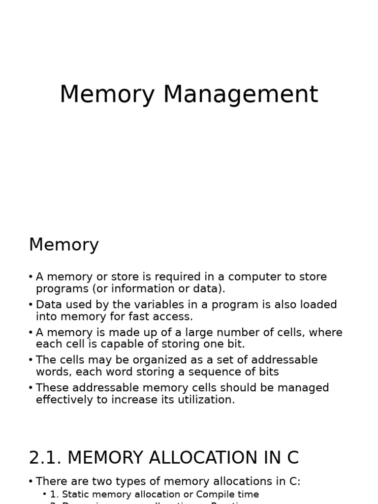 • Note : The memory allocated using malloc() function contains garbage values, the memory