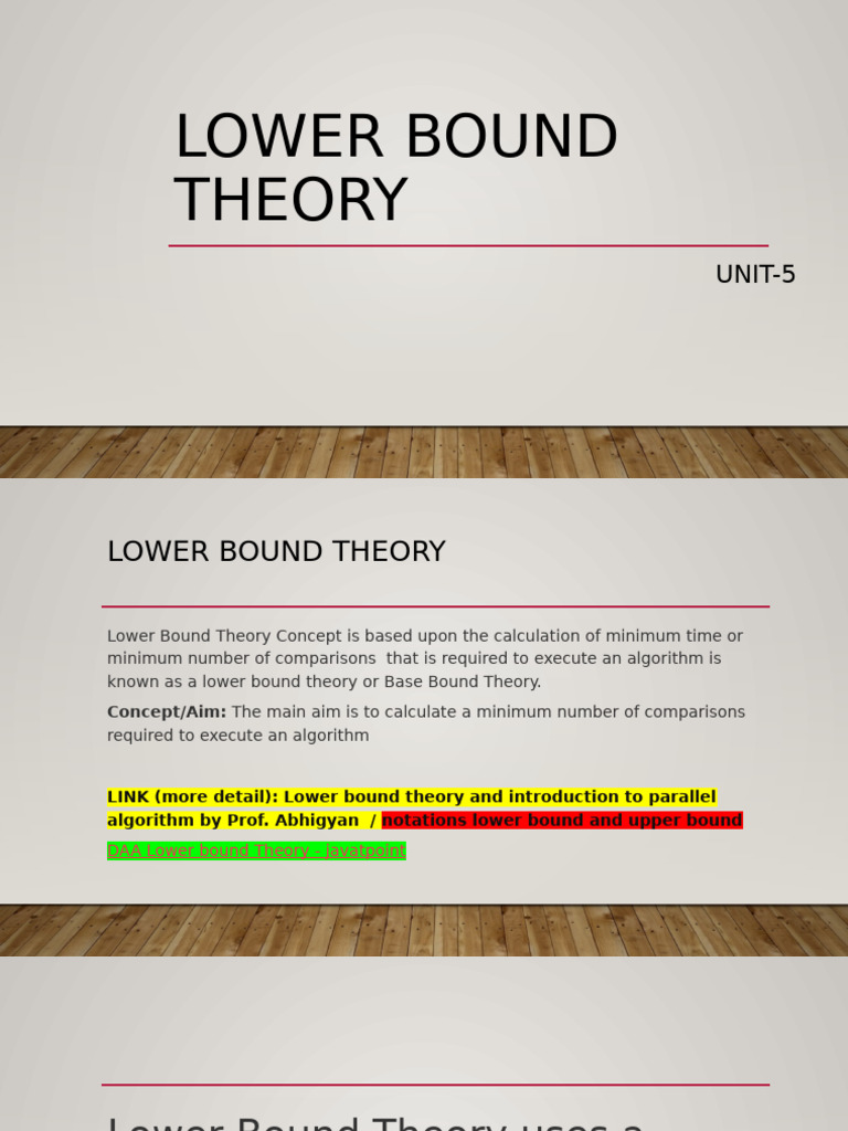 • Lower bound theory and introduction to parallel algorithm by Prof.