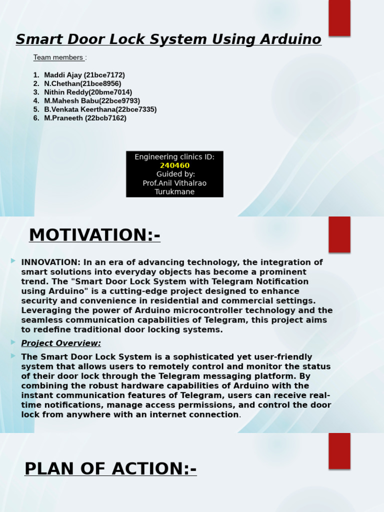 The Smart Door Lock System is a sophisticated yet user-friendly