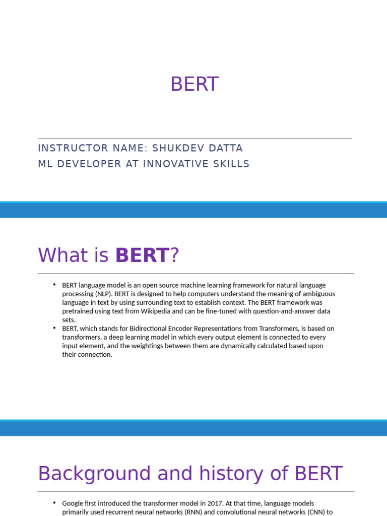 processing (NLP). BERT is designed to help computers understand the meaning of ambiguous