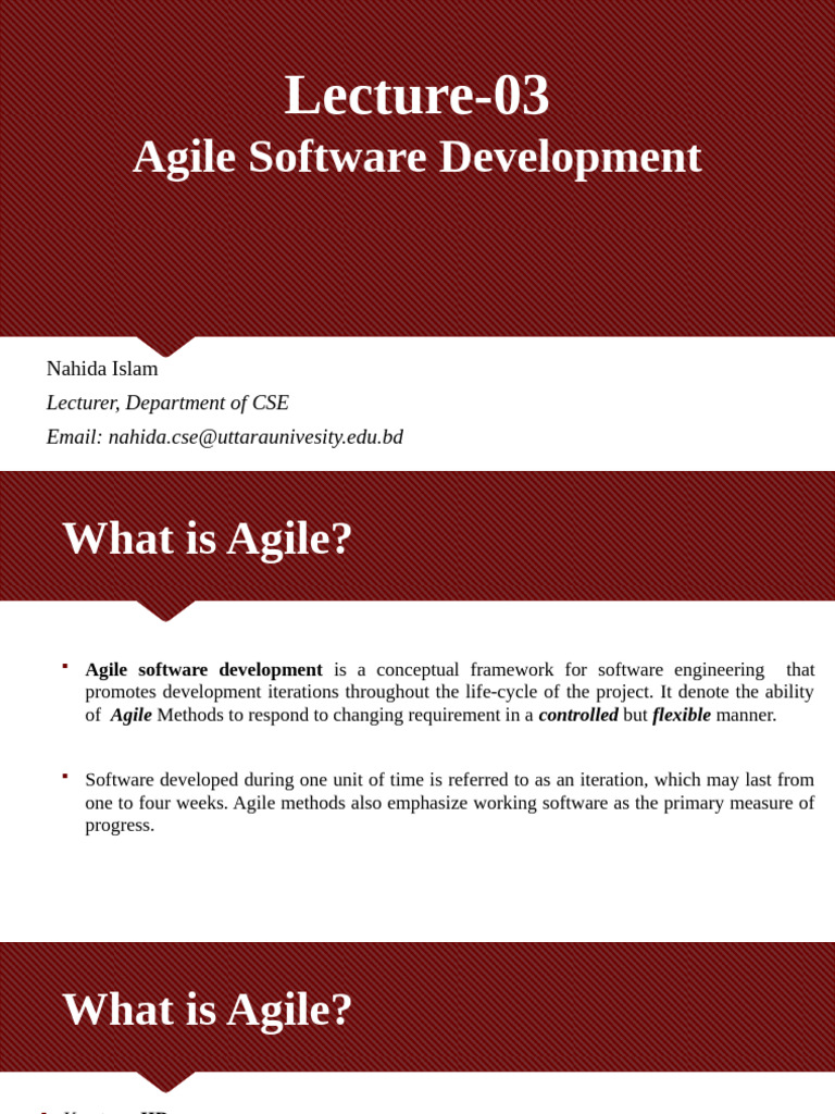 of Agile Methods to respond to changing requirement in a controlled but flexible manner.