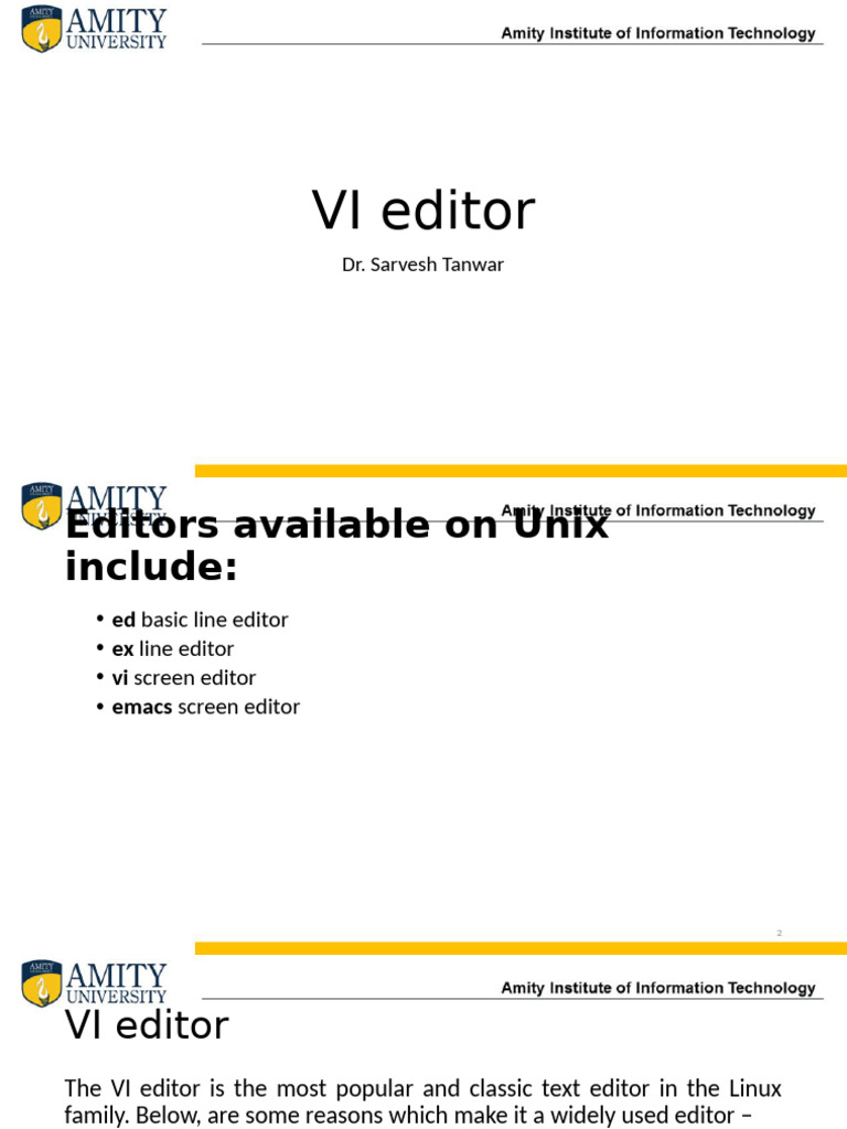 • Note: It is important to note that the Vi editor is case-sensitive.