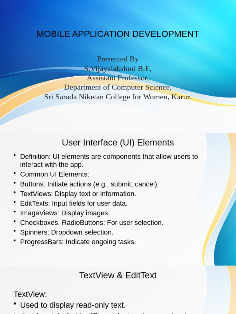• Definition: UI elements are components that allow users to