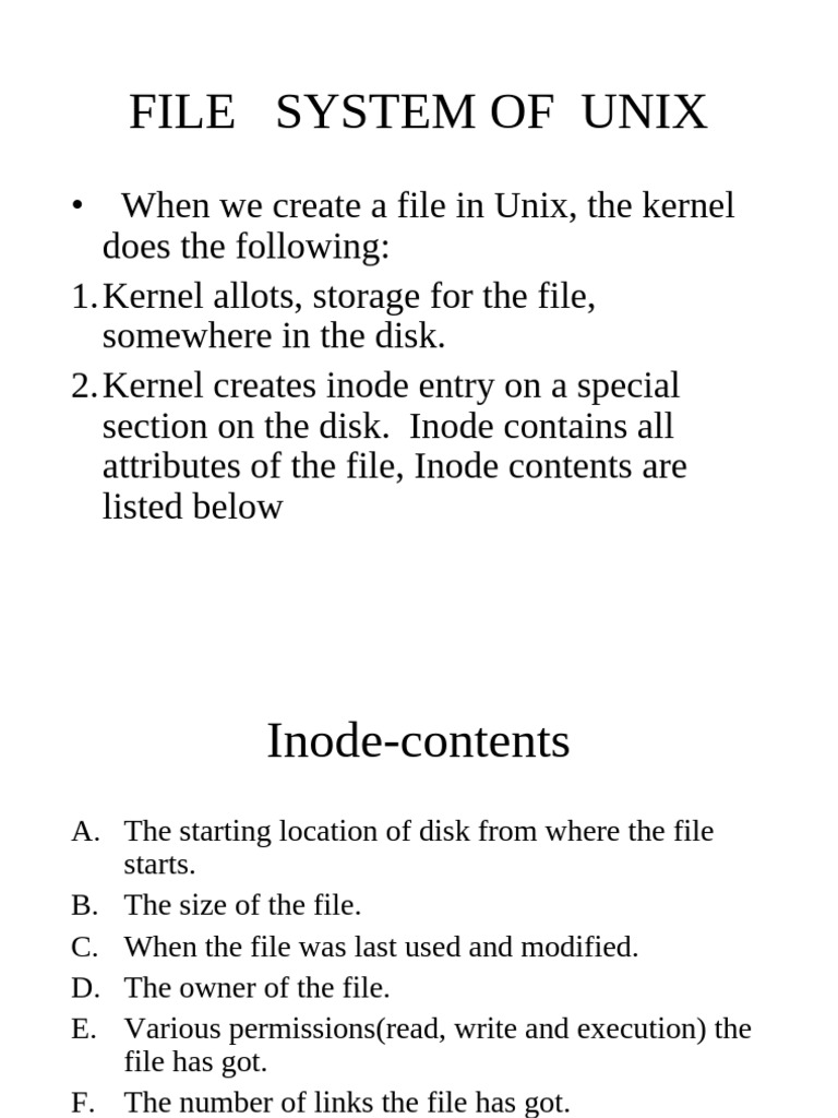 1. Kernel creates a directory entry for the file. Infact Unix treats