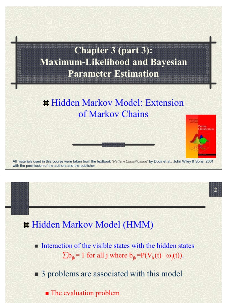 Chapter 3 (part 3): Maximum-Likelihood and Bayesian Parameter Estimation Hidden Markov Model: Extension of Markov Chains