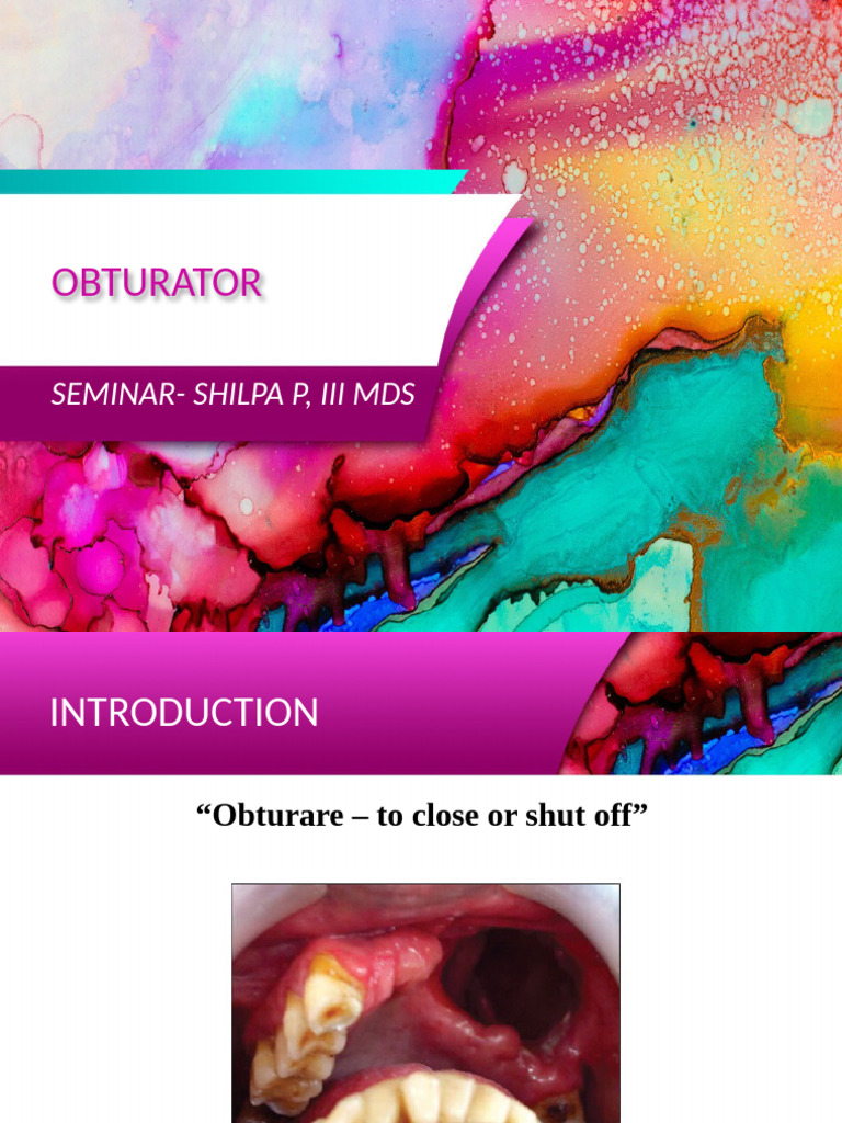 maxillary obturator prostheses.J Prosthet Dent 1997;77:184-90.