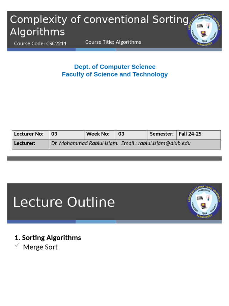Lecturer: Dr. Mohammad Rabiul Islam. Email : rabiul.islam@aiub.edu