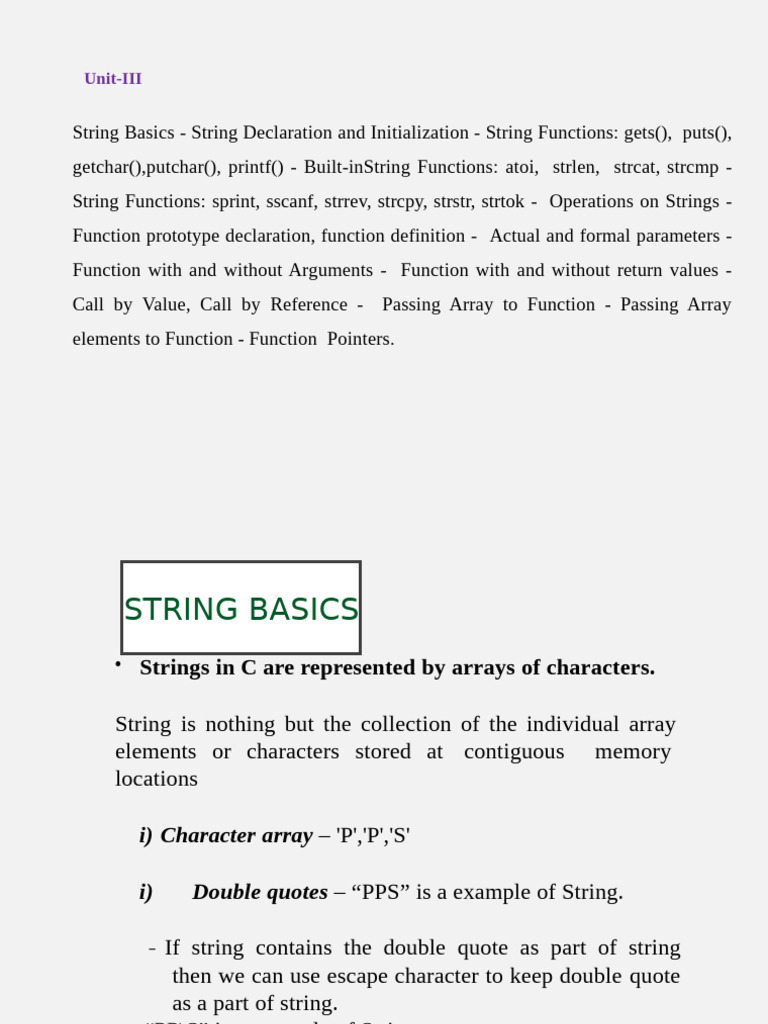 String Basics - String Declaration and Initialization - String Functions: gets(), puts(),
