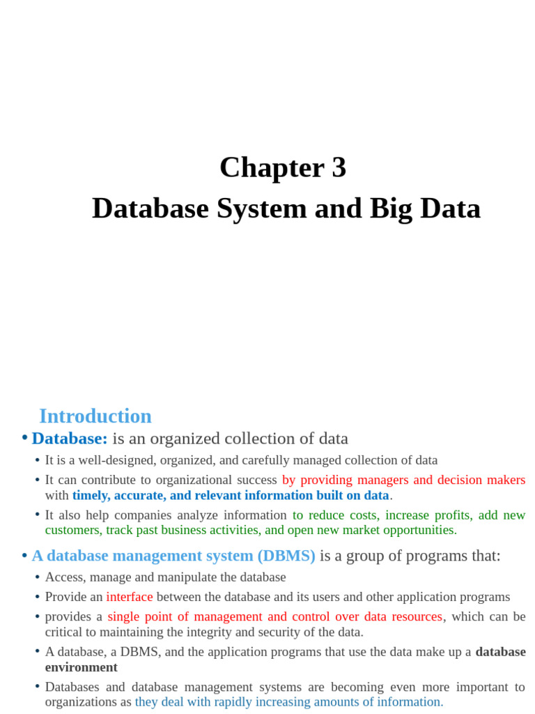 • Databases and database management systems are becoming even more important to