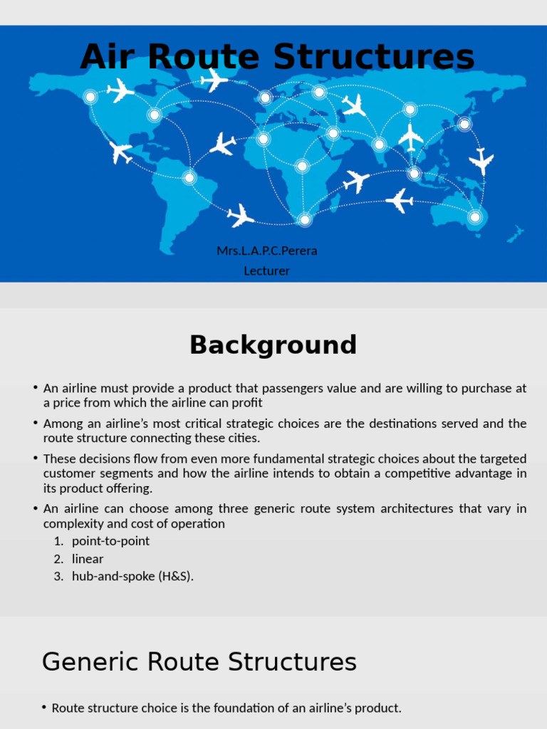 • Among an airline’s most critical strategic choices are the destinations served and the