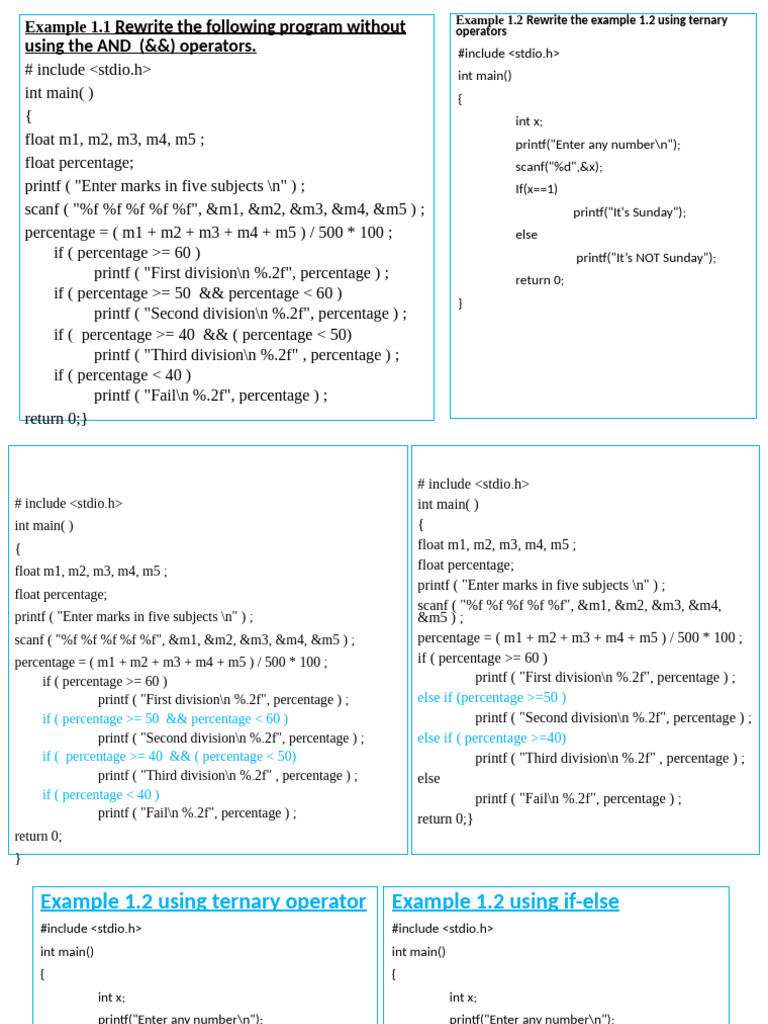 Example 1.2 using ternary operator Example 1.2 using if-else