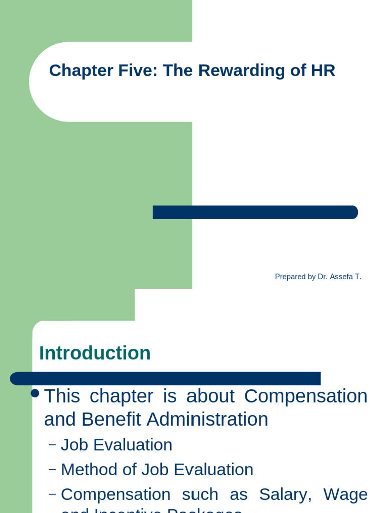 internal ranking of jobs. Prepared by Dr. Assefa T.