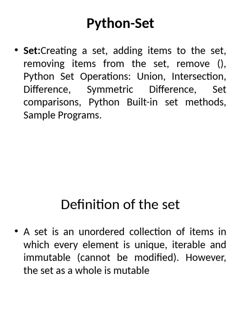 • Set:Creating a set, adding items to the set,