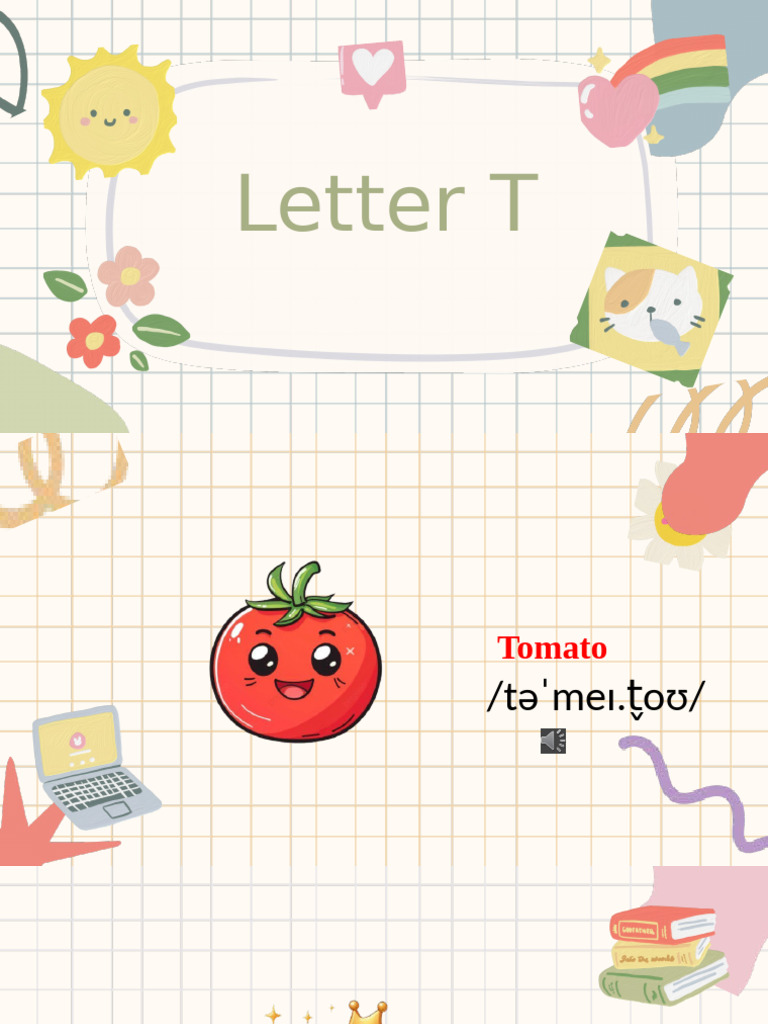 Tomato /təˈmeɪ.t̬oʊ/ Teeth /tiːθ/ Table /ˈteɪ.bəl/ T- Shirt /ˈtiː.ʃɝːt/ tie /taɪ/ What is it? => It is….. What is it? => It is….. What is it? => It is….. Thank you