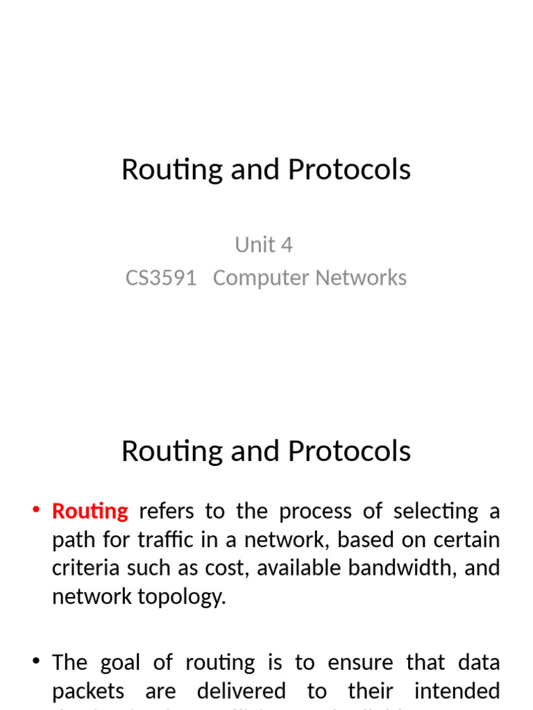 • There are many different routing algorithms, each with its own advantages and limitations.