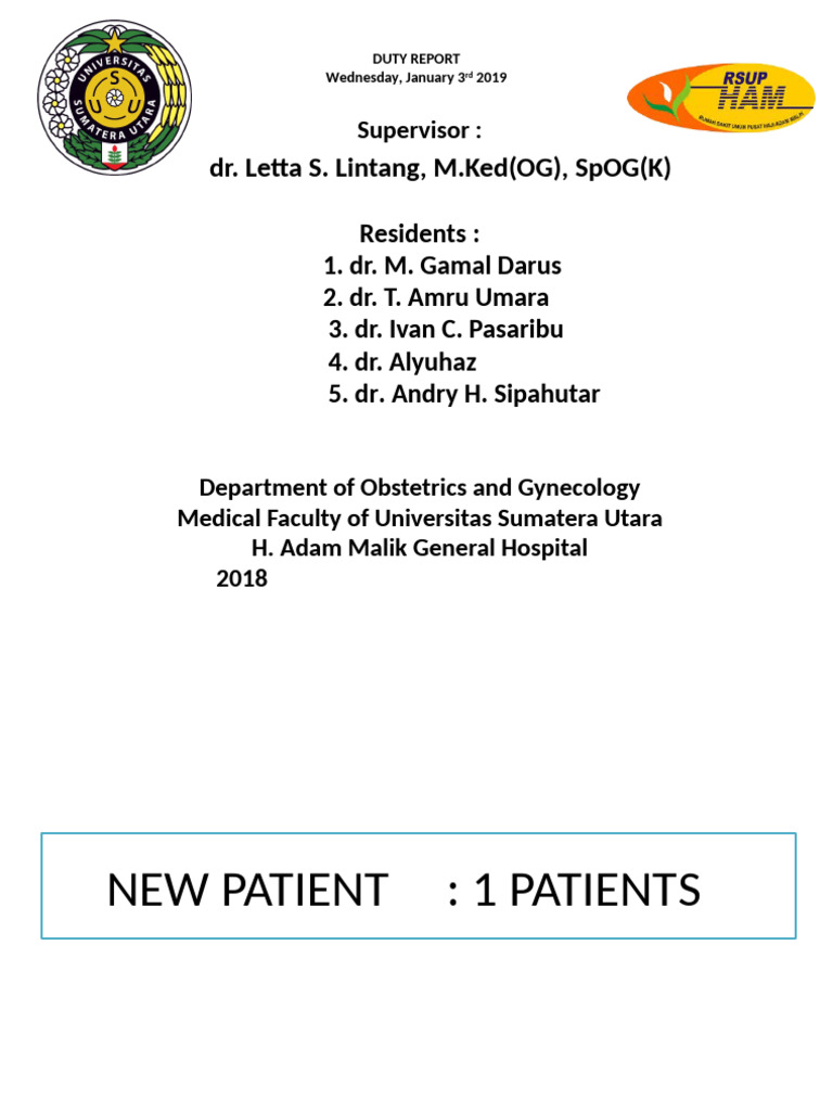 Reported to Supervisor on duty dr. Arvita Muriany T. Lubis,