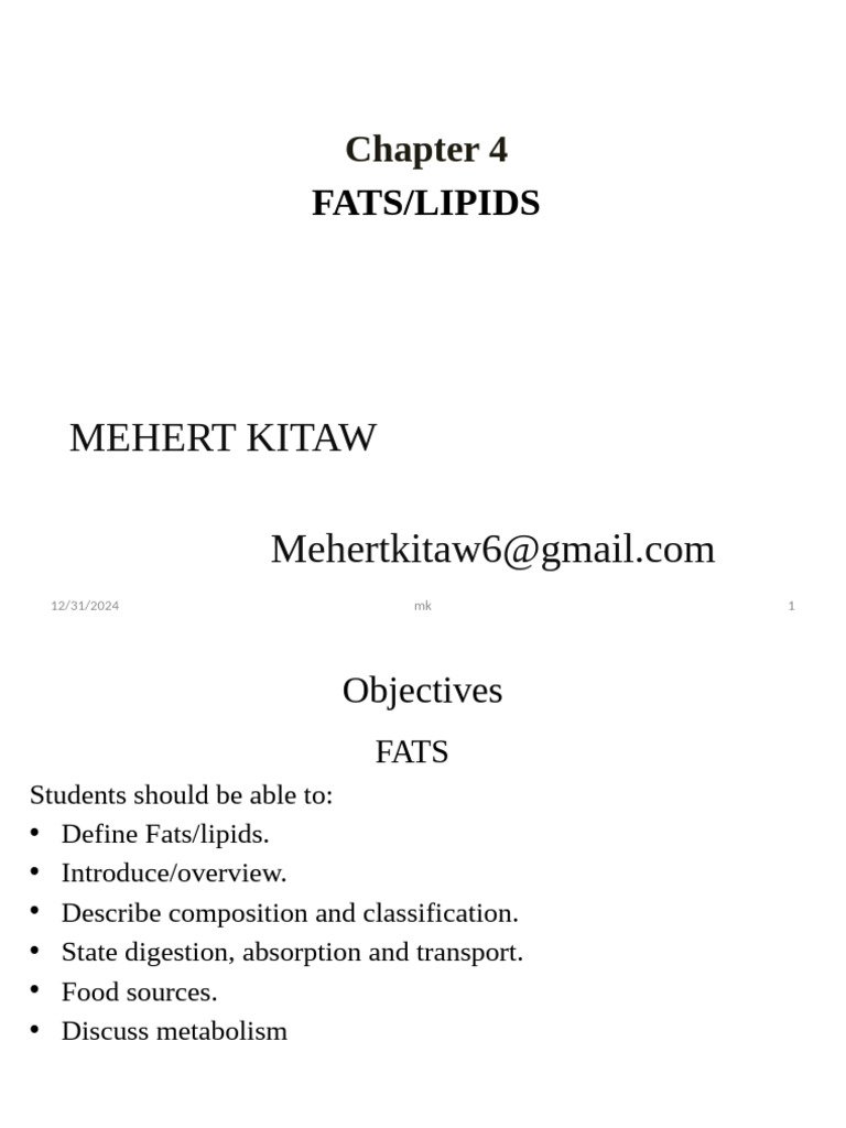 1. Simple lipids: include fats and oils (Fatty acid and glycerol)