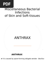 • The skin lesion (cutaneous anthrax) is usually solitary, painless,