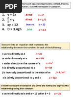 • The equation of variation given that “y