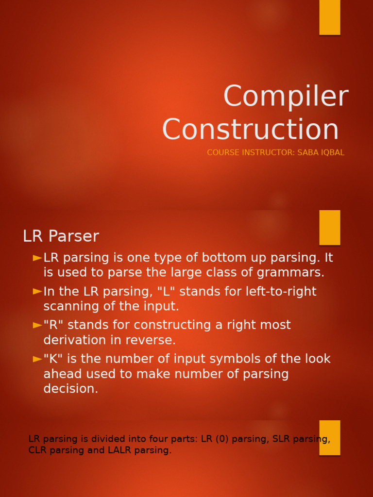 LR parsing is divided into four parts: LR (0) parsing, SLR parsing,